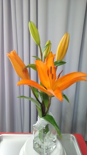 撮影が下手で、ガラホのカメラなので画質が悪いです。 販売されてた時に、花の名前を見てなかった。なんの花やろ?